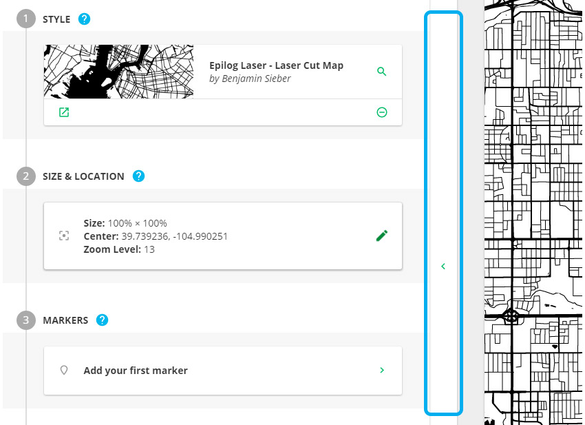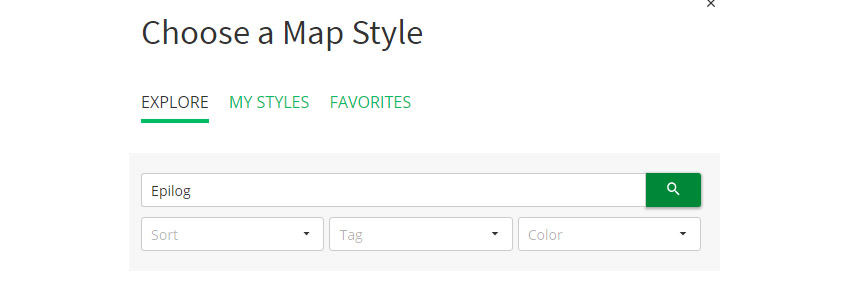 Select the “Epilog Laser – Laser Cut Maps” style in the results section by Clicking on the option, then Apply Style at the bottom of the page.