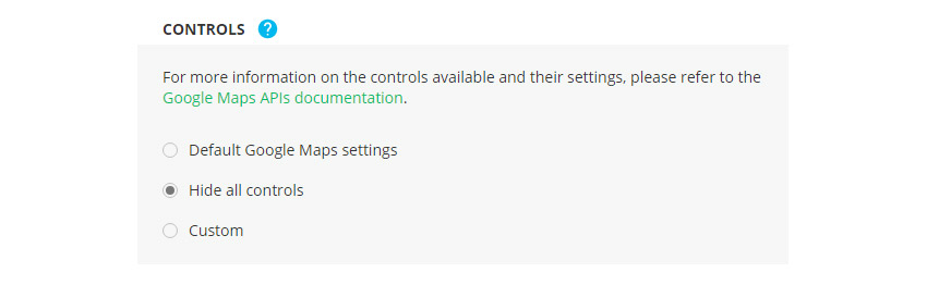 Most of the settings in this section apply to using maps on a website, so you can ignore most of them. Under the Controls section, click on the button next to Hide all controls – this will make it easier to capture an image of the map. Then click Apply Changes.
