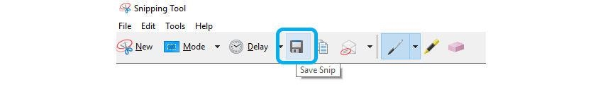 Next, click the Save Snip option (Disk icon) near the top of the screen.