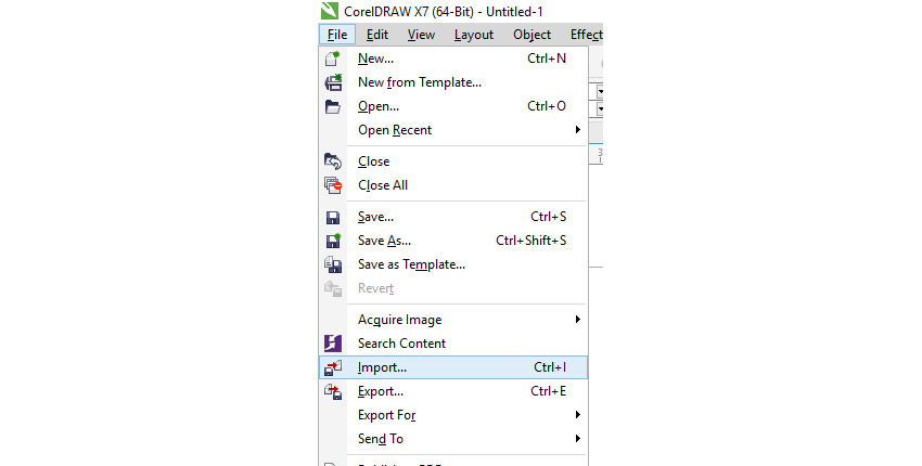 With CorelDRAW open and a new page created, start by selecting the Import Image option from the File drop-down menu at the top of the page (Ctrl + I).