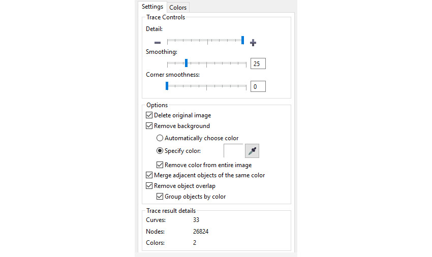 • Leave Smoothing at 25, which is the default for a Line Art trace.