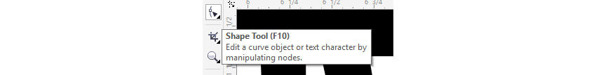 With the comma now converted to curves, we can edit the parts of the shape no longer needed for the next step. With the comma still selected, click the Shape Tool (F10).