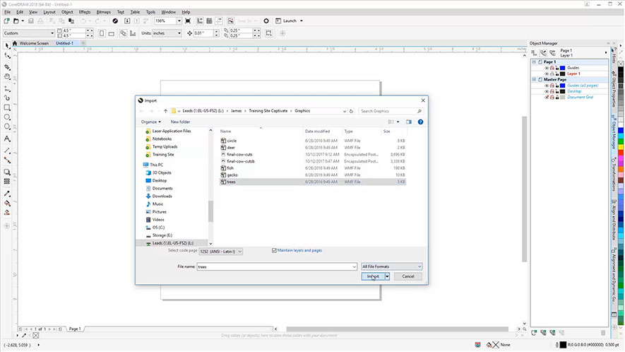 Now we’re going to import a graphic onto the page. For this example we will use trees.wmf, but you can use any graphic you prefer.