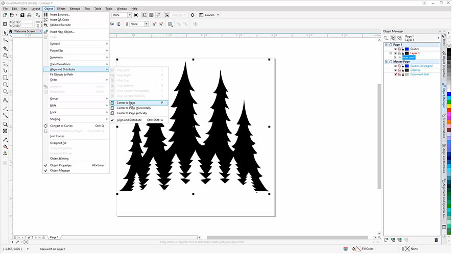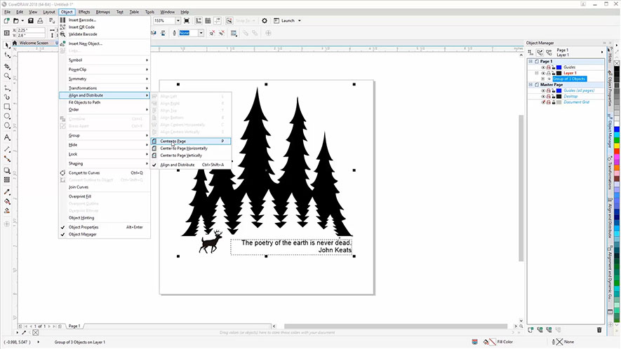 Now we’ll center the images. Click Object, Align and Distribute, Center to Page.