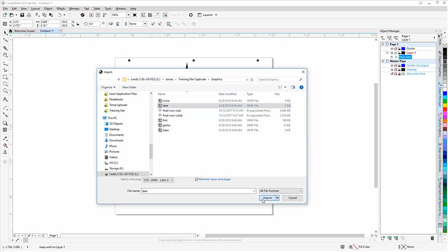 Now let’s import another image. Go to File > Import, and we’ll choose the deer file (deer.wmf). Then Press the Import button.