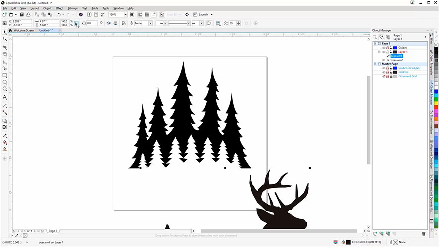 This time we’ll use another way to resize the deer. Click the Lock Ratio button to keep the dimensions the same as we resize the graphic.