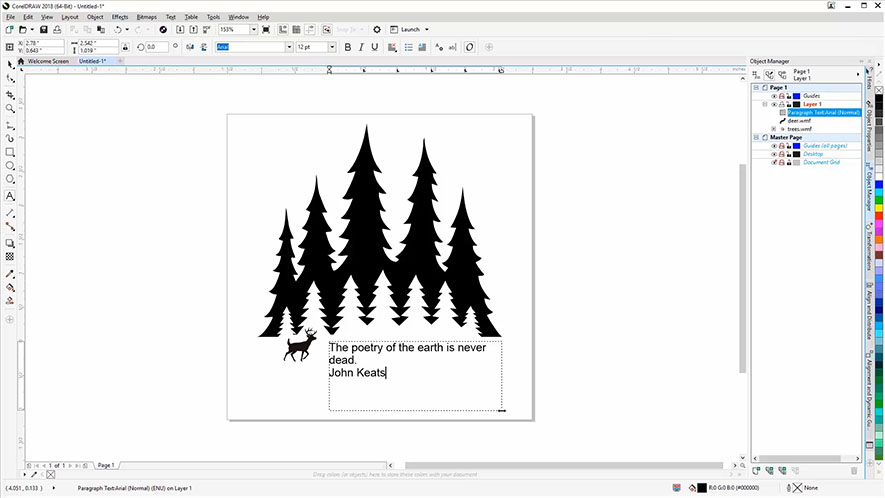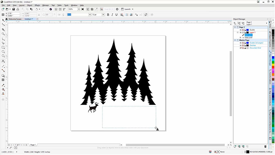 Create a text box by clicking and dragging a rectangle next to the deer.