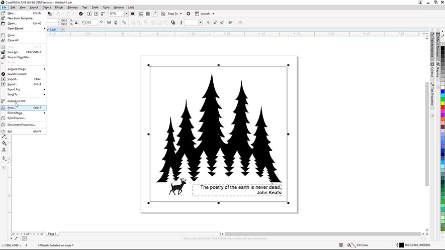 Back in the CorelDRAW, select File, then Print from the dropdown menu.