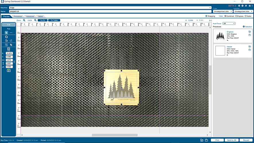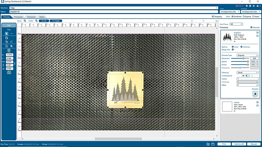 Now that our settings are good to go, we can click ‘Print’ to send the job to the laser.