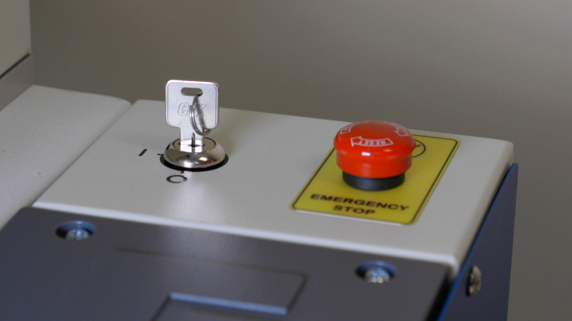 Plug in the power cord and insert the key into the key slot to power up the machine. Remember, both the power switch and the key must be in the “On” position for the machine to power up.