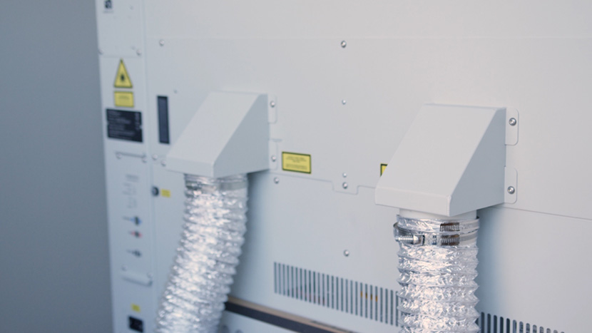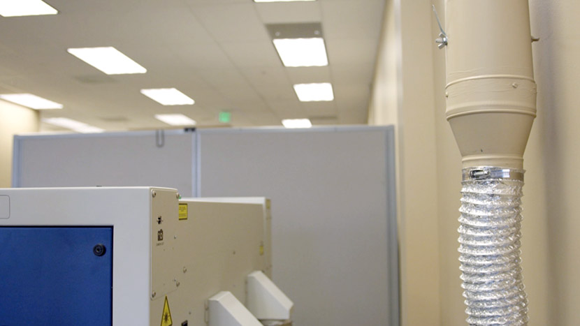 Required exhaust flow rates for filtration systems might be lower than the 650 CFM we require for external exhaust, because the filtration system will be placed directly adjacent to the laser system and does not exhibit the air-flow losses typically found with direct exhaust fans.