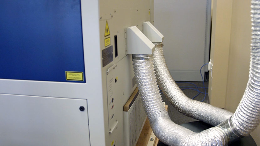 It’s important that either rigid or flexible metal ducting be used with the laser. Plastic or other soft ducting is potentially flammable and should not be used unless provided by the filtration system manufacturer and made from fire-proof materials.