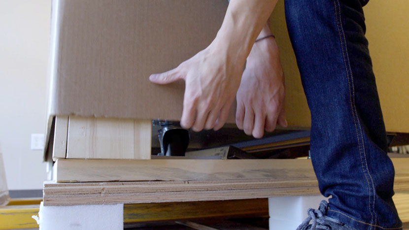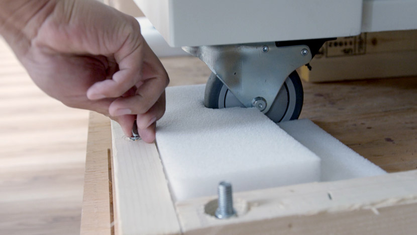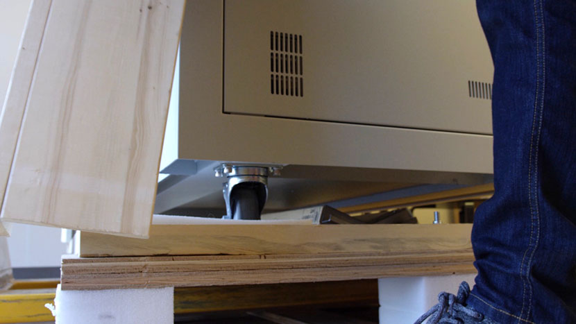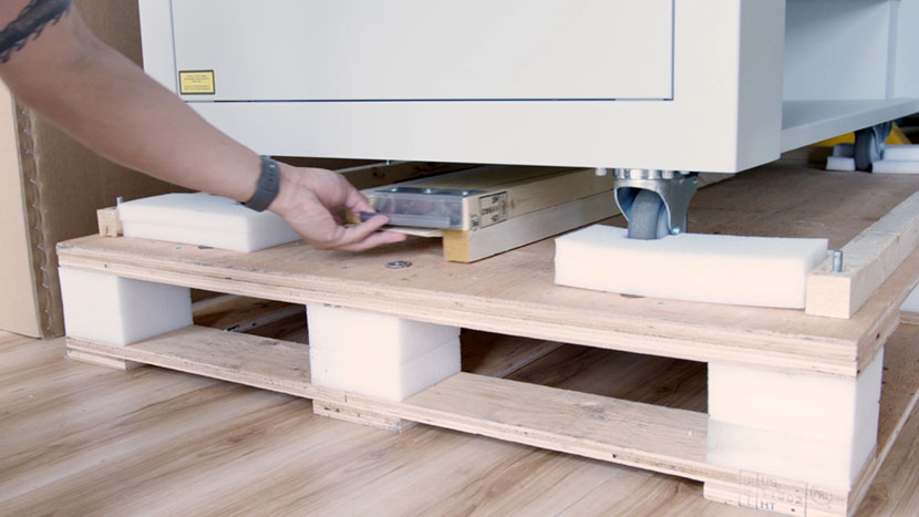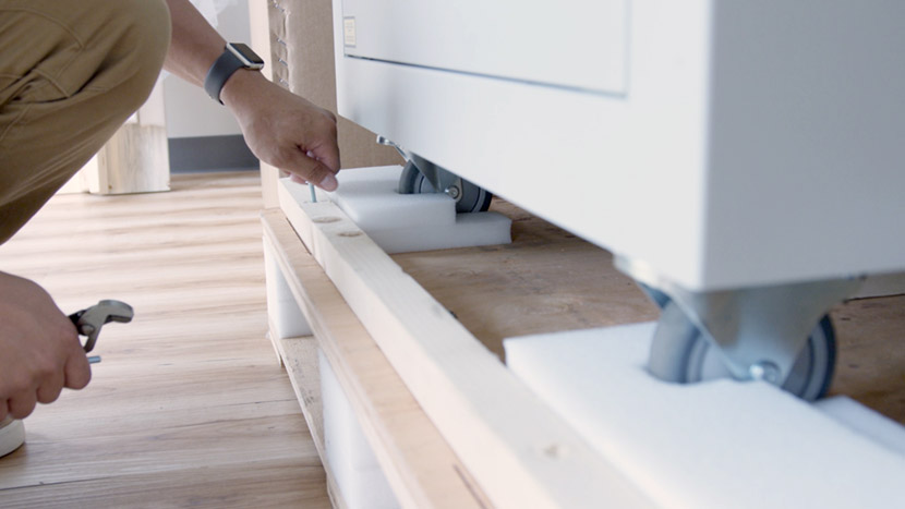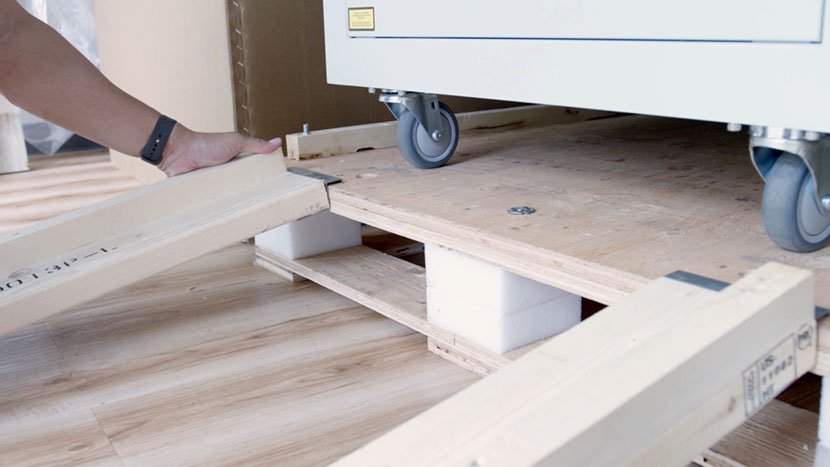 Note: As you’re removing the Fusion M2 box, be sure to pull out the foam and wood corner braces before taking the box all the way off the Fusion M2.