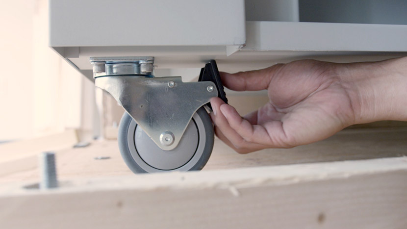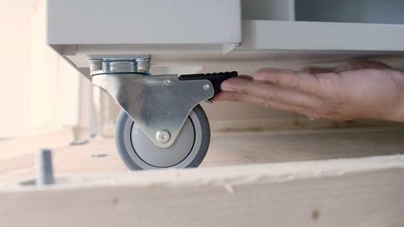 Affix the ramps to the side of the pallet by inserting the metal edges into the slits located where the wooden edge used to be. Make sure the ramps are aligned with the wheels.