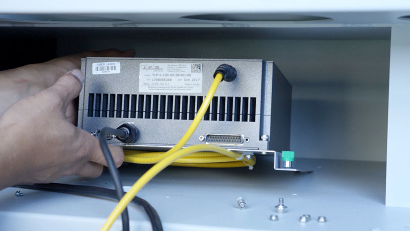 The Fusion M2 Fiber Laser Tube is located on the bottom compartment of the machine.