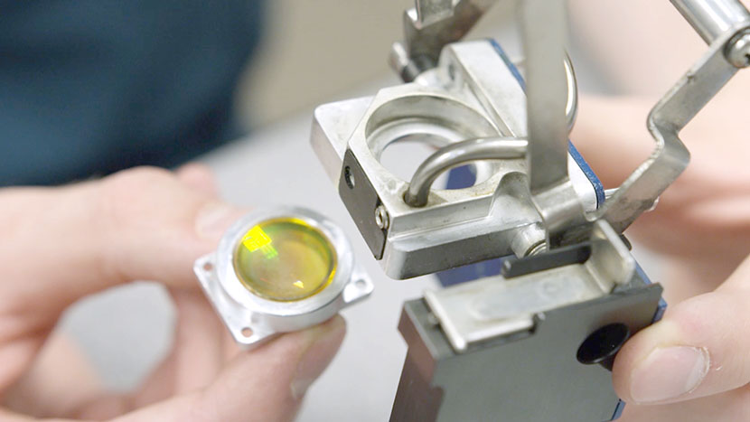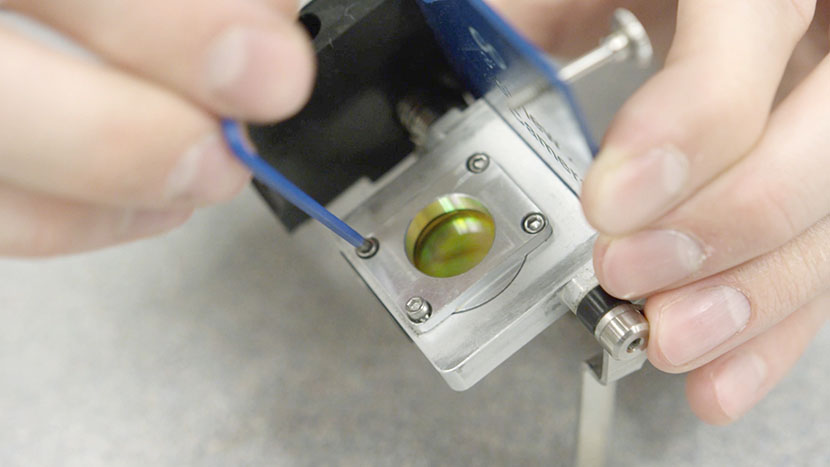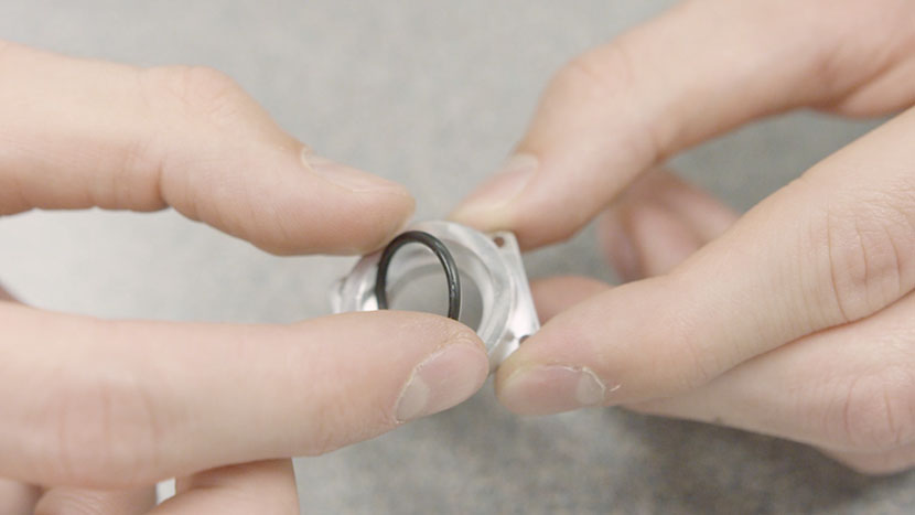 Once the correct O-ring has been installed, return the lens assembly to its housing and tighten the three screws on its front face.