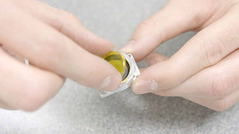 Place the new lens on top of the O-ring, with the curved, convex side facing the O-ring.