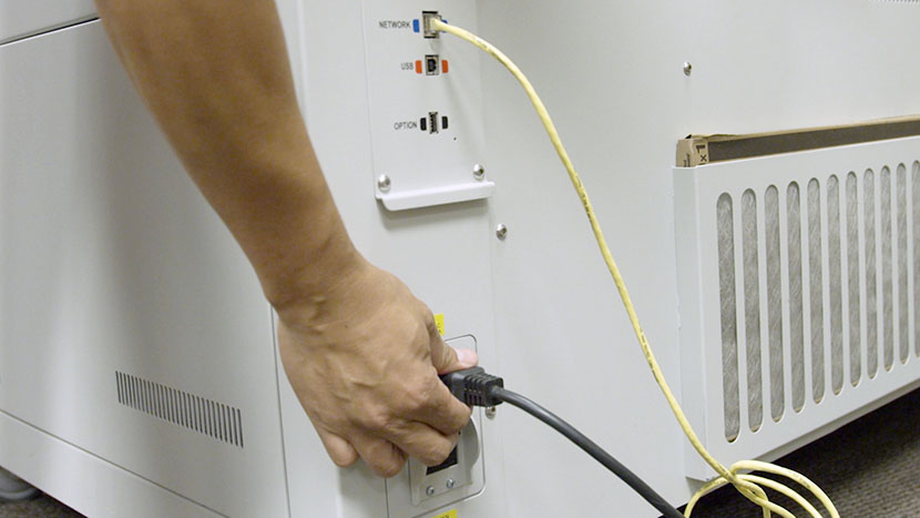 Shut off the laser and remove the power cord from the machine.