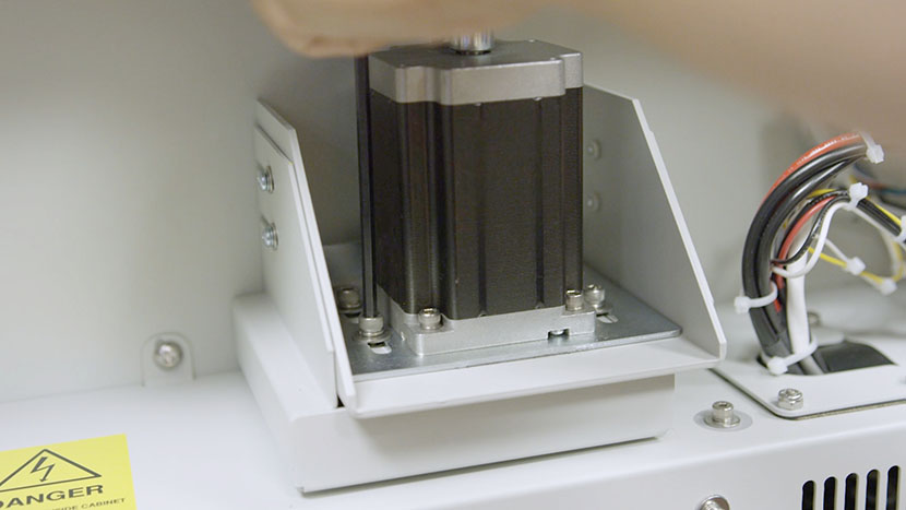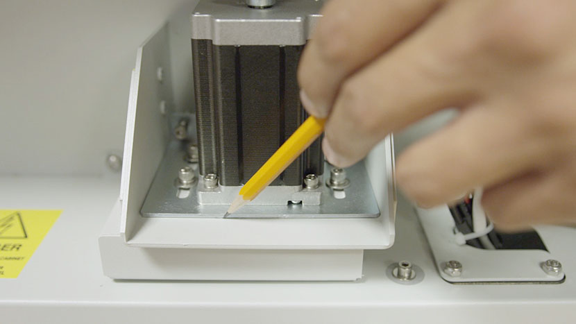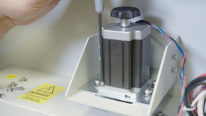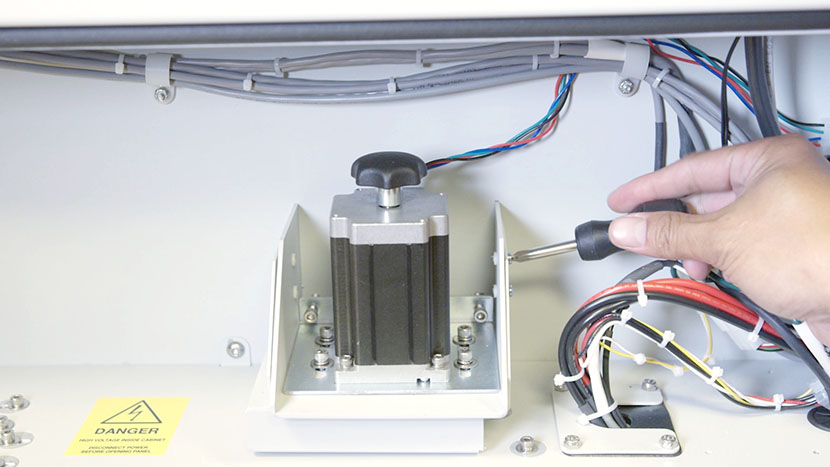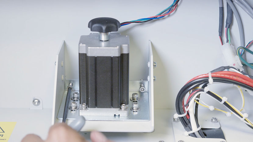 To do this, use a Phillips head screwdriver to loosen, but not remove, the four screws on either side of the z-motor housing.