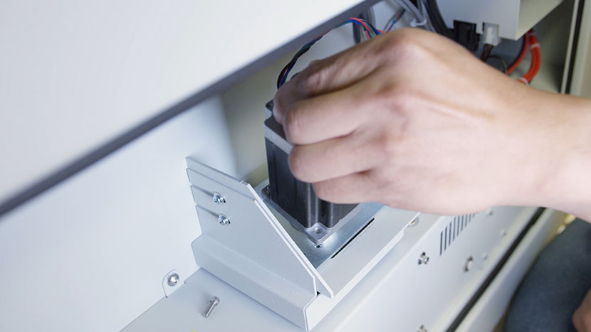 If you removed the outer component of the z-motor housing, slide it back on and use a Phillips head screwdriver to tighten the four screws.