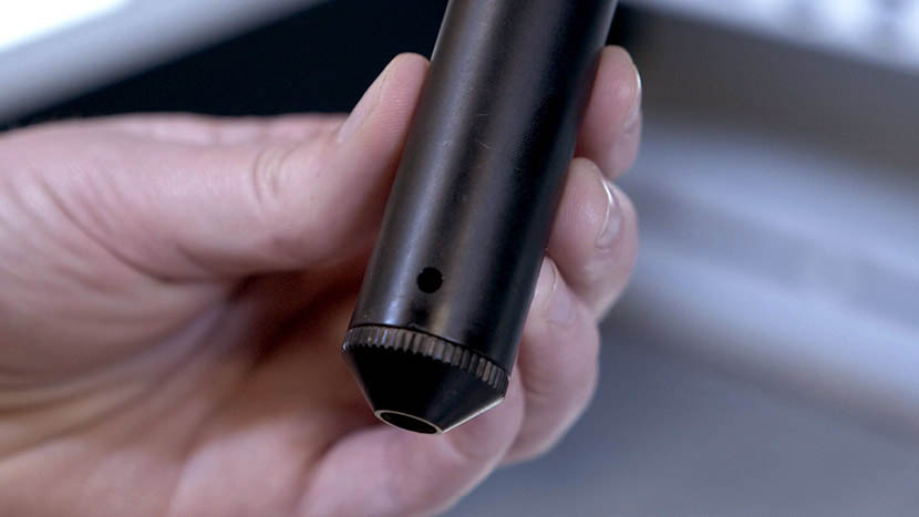 Place the new tube into the assembly, making sure that the hole near the bottom of the tube lines up with the air assist hole on the assembly.