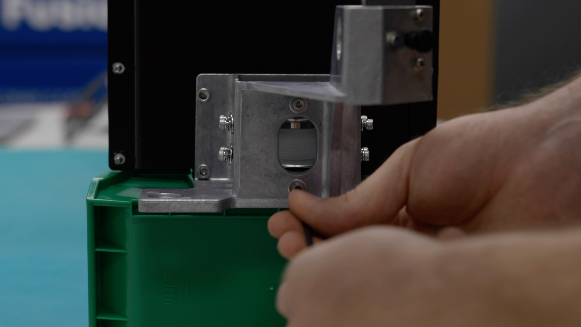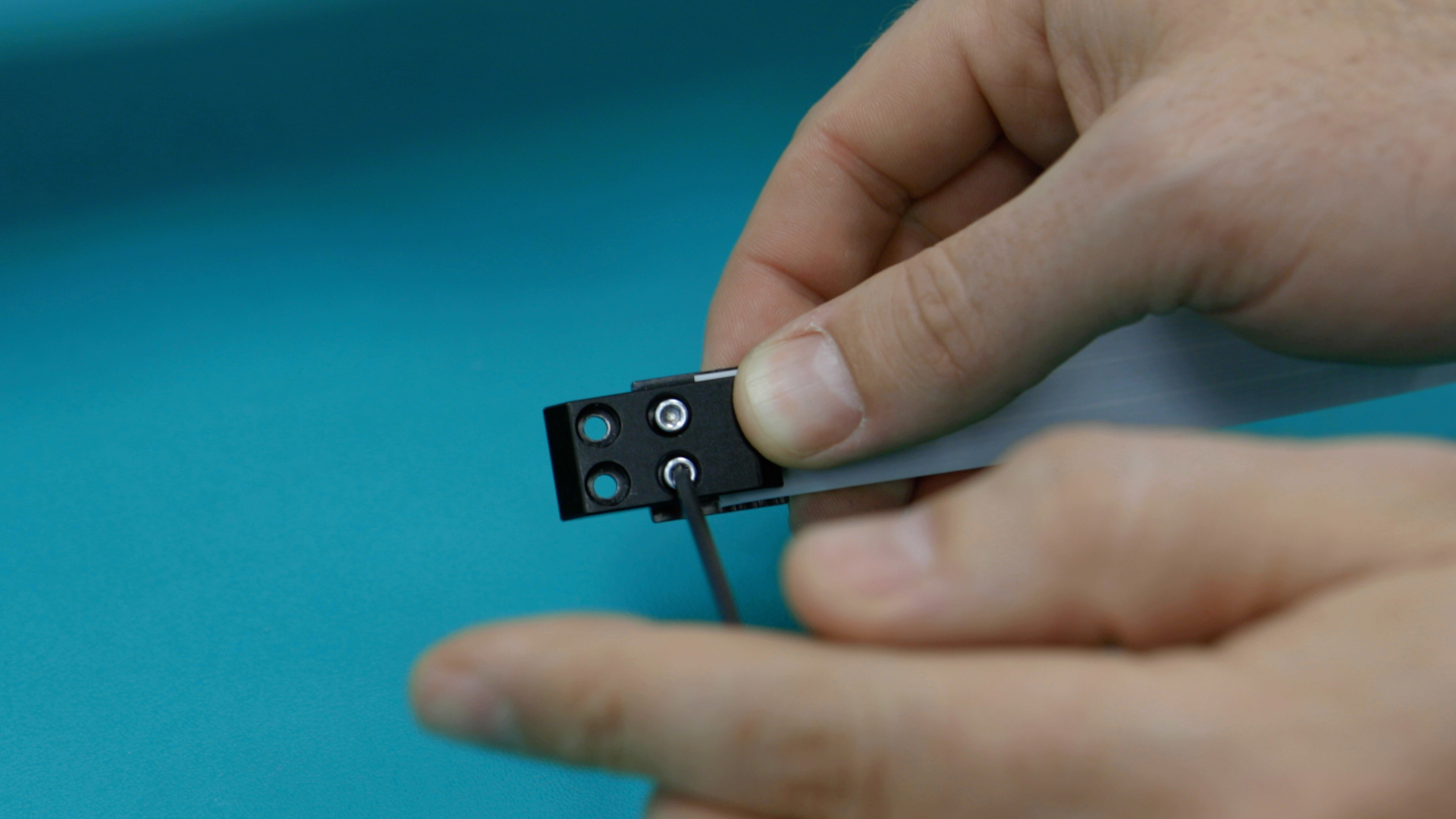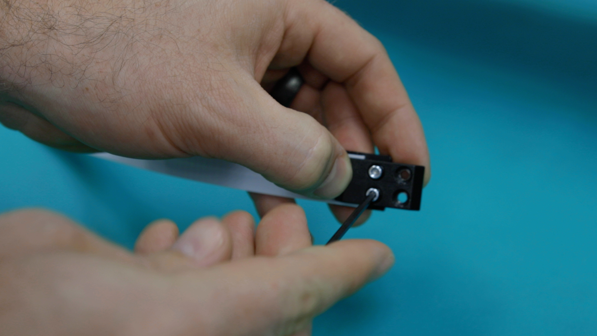 Now it’s time to tension the X-axis belt. Begin to apply tension to the X-axis belt via the two 7/64” x-axis belt tensioning screws that were loosened earlier until there is no slack left on the belt.