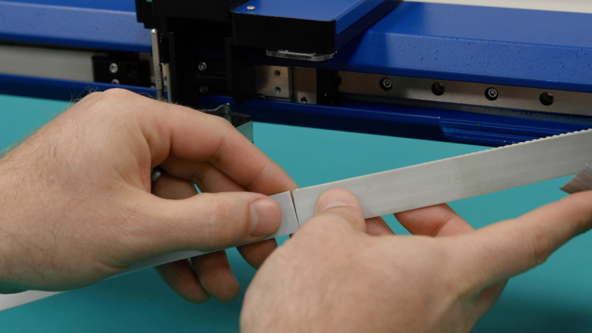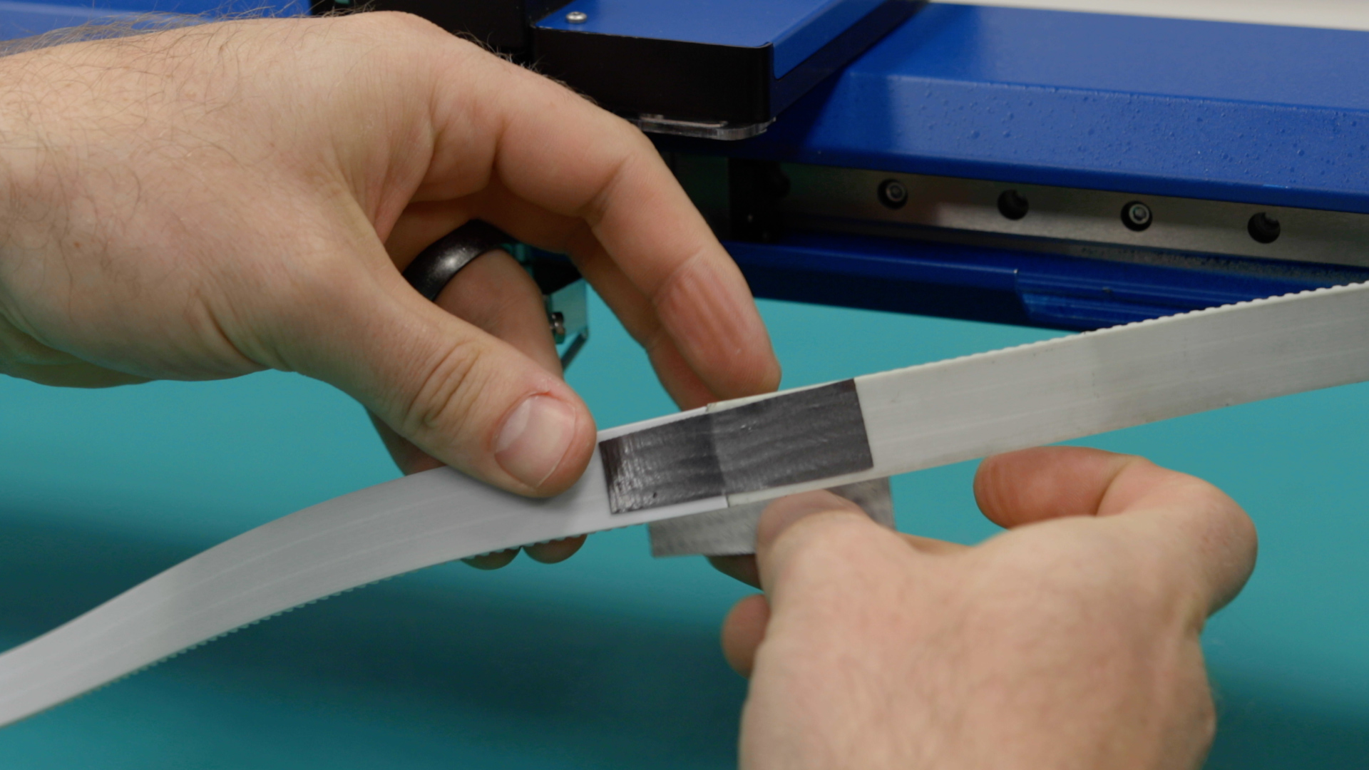 Before securing both the old and new belts together, ensure that the orientation of the teeth match. The teeth of the belt just face towards the rear of the engraver, while the smooth side should face the front of the engraver.