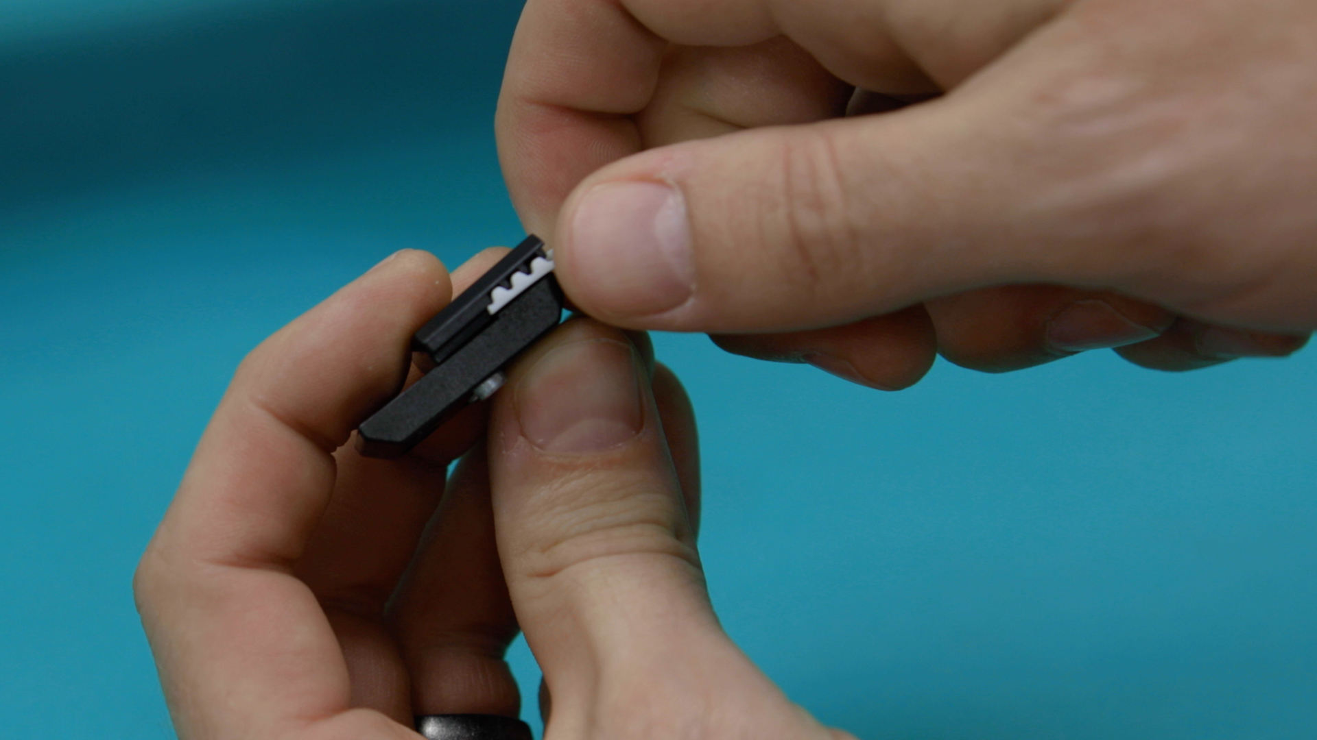 Pull the right side of the belt away from the lens assembly and place it next to the new belt end-to-end.