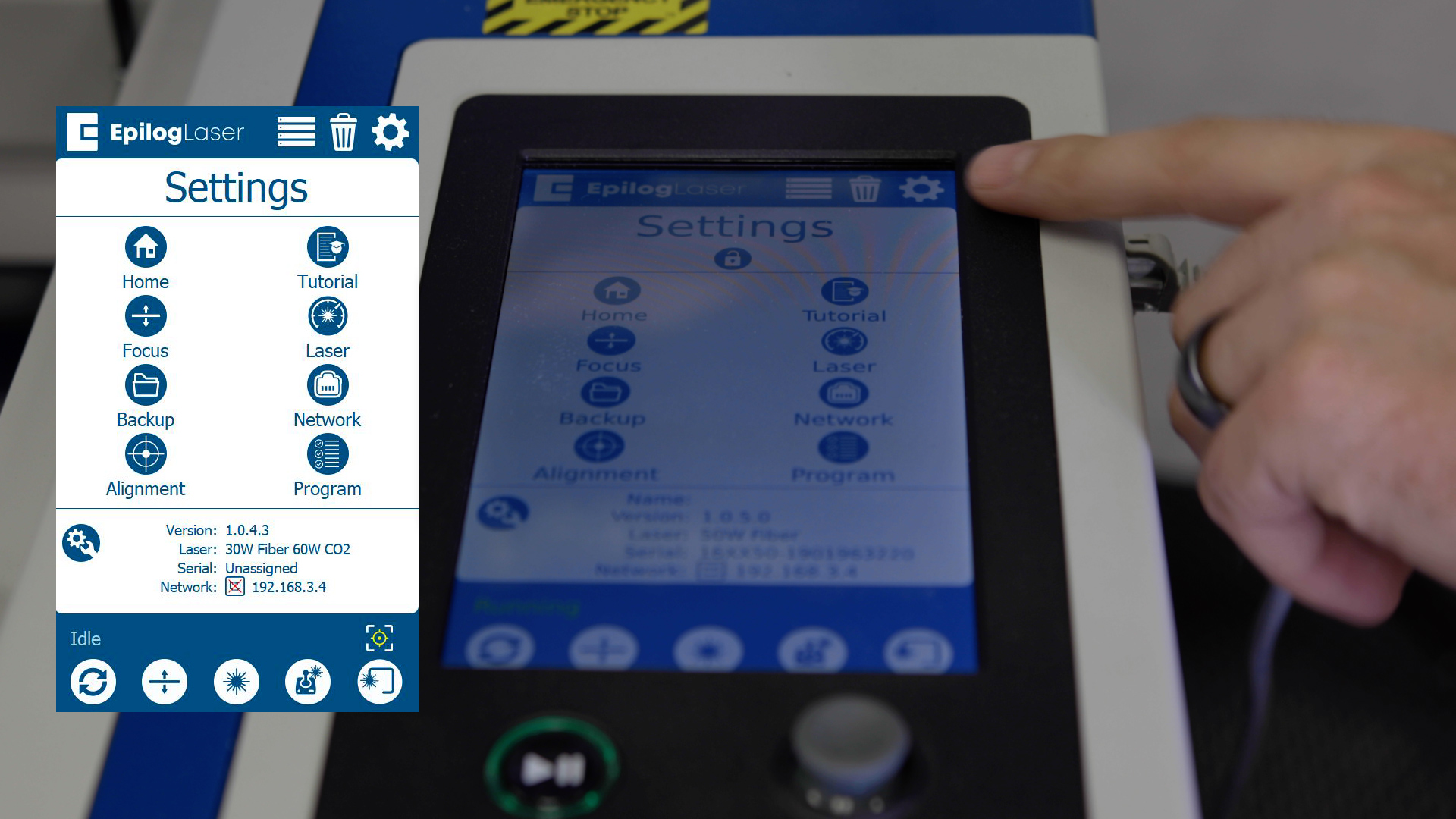 At the display panel, press the gear icon in the upper right-hand corner of the display to open the Settings menu.