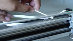 Clean one end of the rail by running the cotton swab along the top and bottom of the rail. Repeat this process until the cotton swab comes away clean, using new cotton swabs when the old ones become dirty.